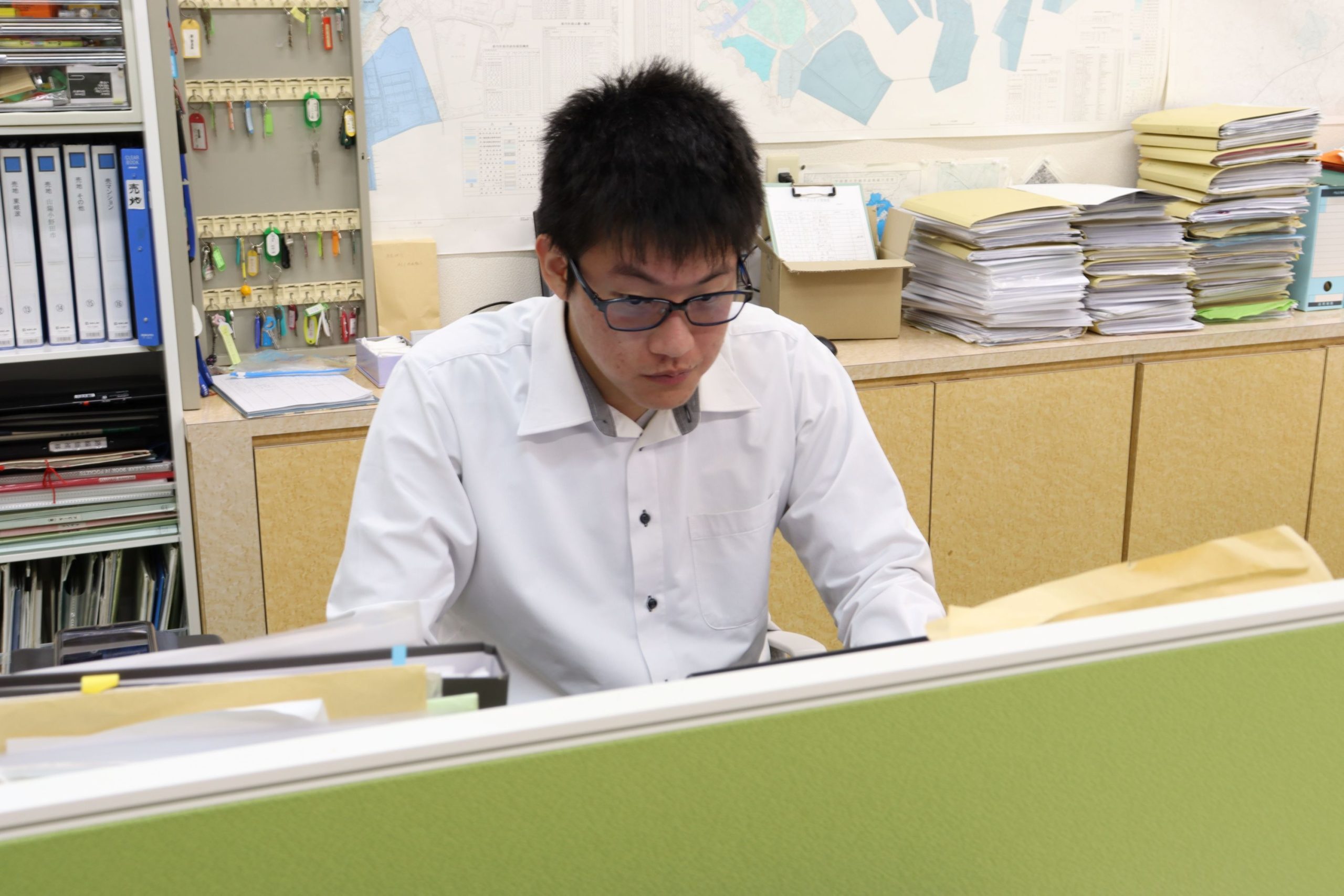 母がインテリアコーディネーターをしているため、元々不動産関係には興味がありました。その中で、売買仲介課を希望した理由は、尊敬できて憧れる先輩社員のIさんがいらっしゃったからです。入社後の研修で、ジョブローテーションにより各部署を回る機会があり、その際にIさんとお話して惹かれました。Iさんはバイタリティにあふれ、頭の回転も速いのに、それを鼻にかけず落ち着いて構えていらっしゃる方で、そんな方と一緒に働きたいと思いました!